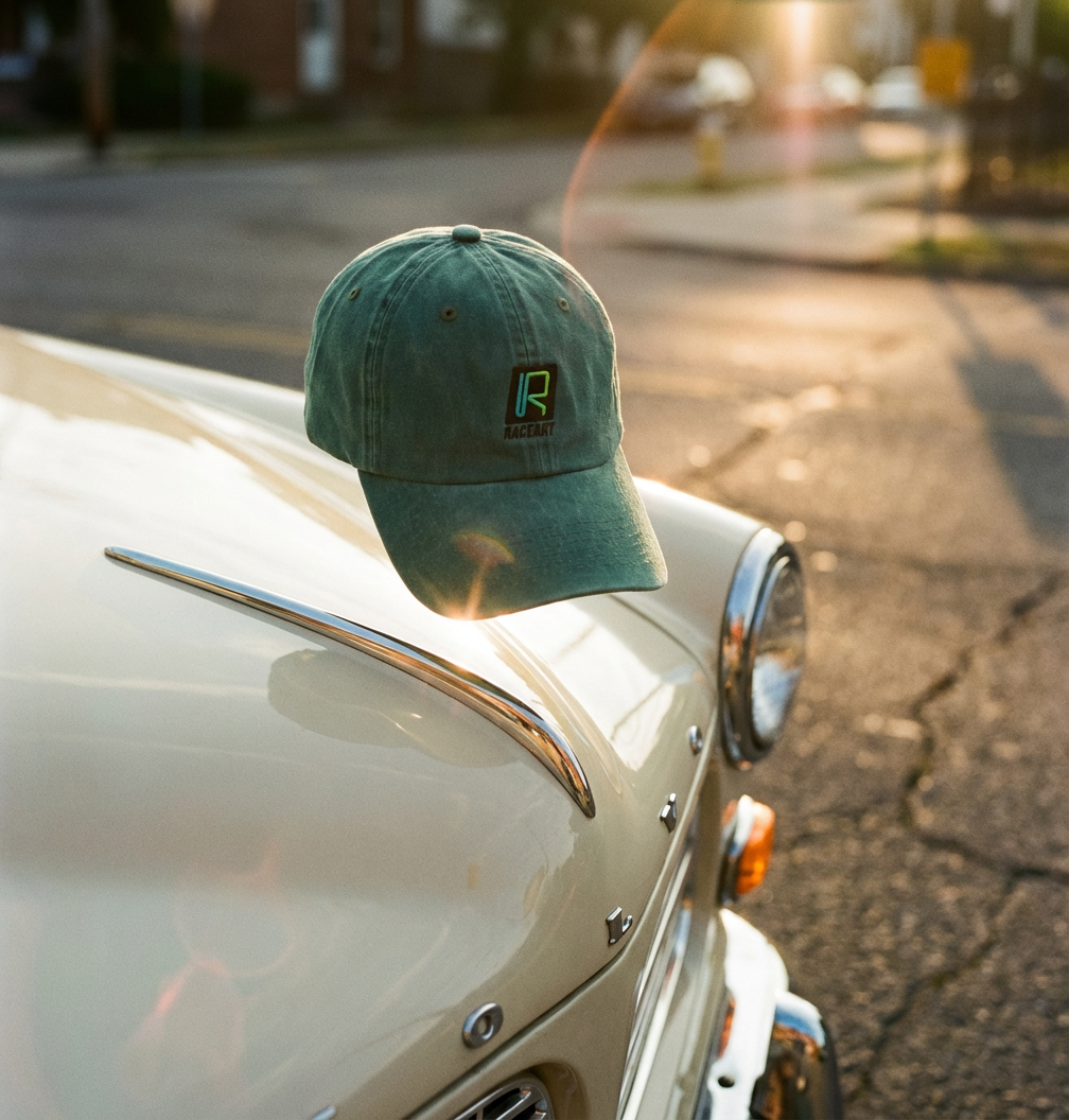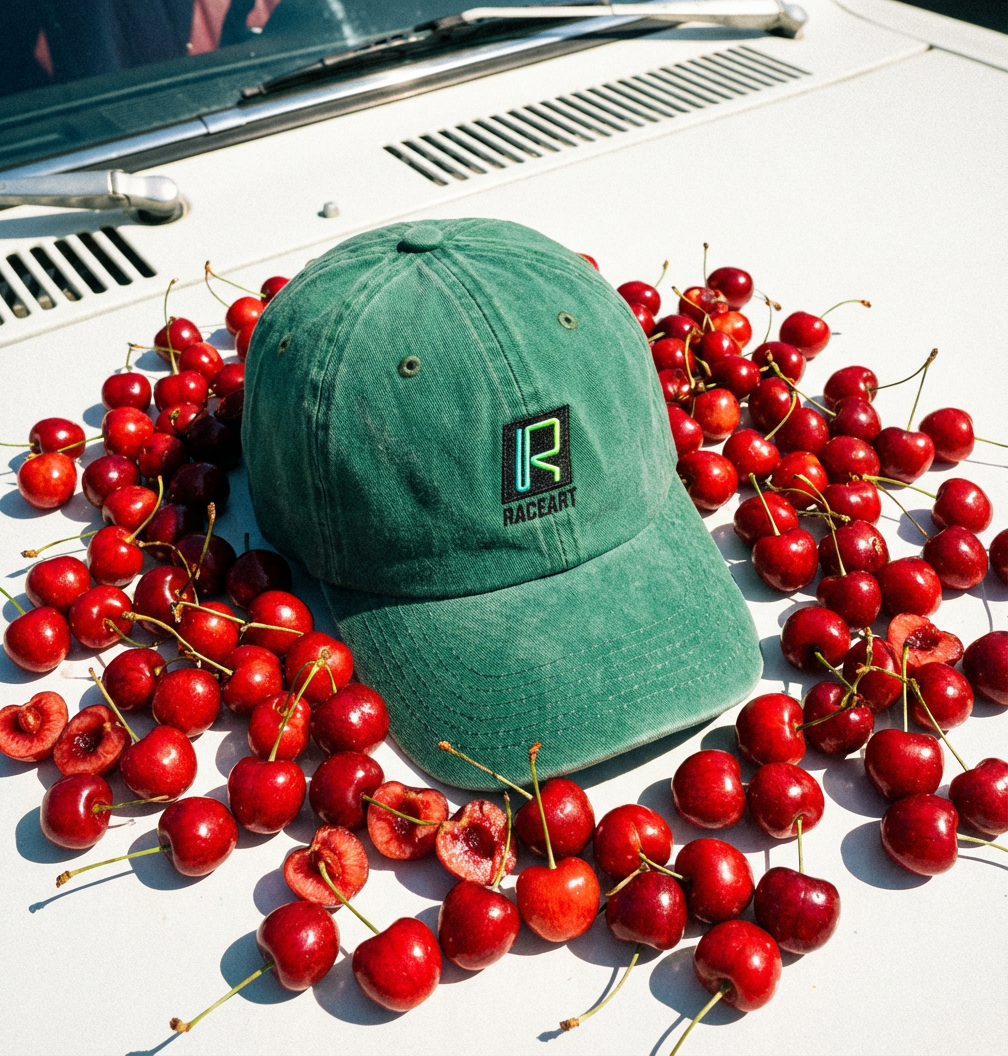 I built prompts that directed Weavy AI toward natural product integration where the cap appears as part of scenes rather than isolated hero shots. The system generated consistent imagery across different contexts while maintaining the teal color palette that defines RaceArt's visual identity. Each image serves a different function in the marketing funnel from initial product reveals to contextual storytelling that connects the cap to the culture it represents.